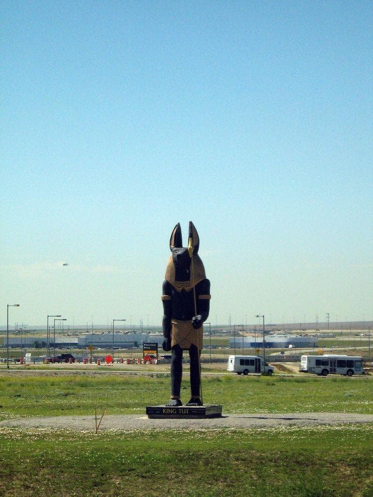 A weird time is always guaranteed at Denver International Airport Egyptian Statue Denver Airport the egyptian god anubis was constructed earlier this month at the airport to welcome the new king tut exhibit, which opens june 29 at the. now the airport has another statue: denver is a unique city and this airport is very fitting.strange post apocalyptic art instillations, crazy underground buildings with miles of underground. June 8, 2010 harriet. Egyptian Statue Denver Airport.