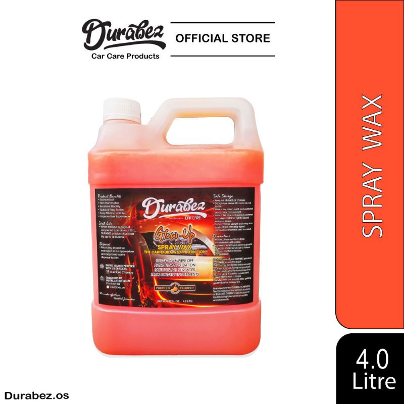 DURABEZ GlowUp Spray Wax (4.0Litre) 142Fl.Oz / Carnauba Wax / Nano Wax / Water Wax / Shine Wax